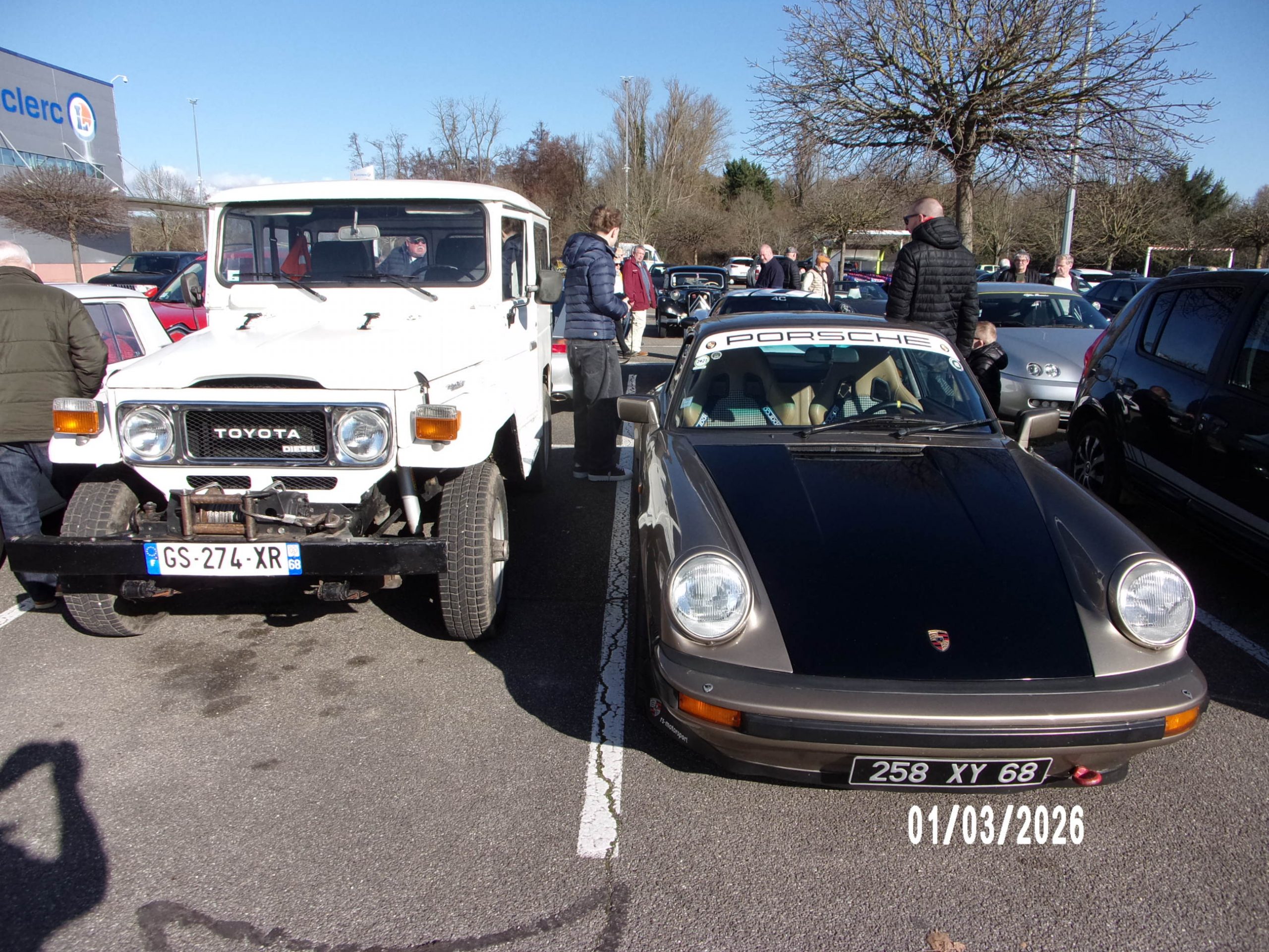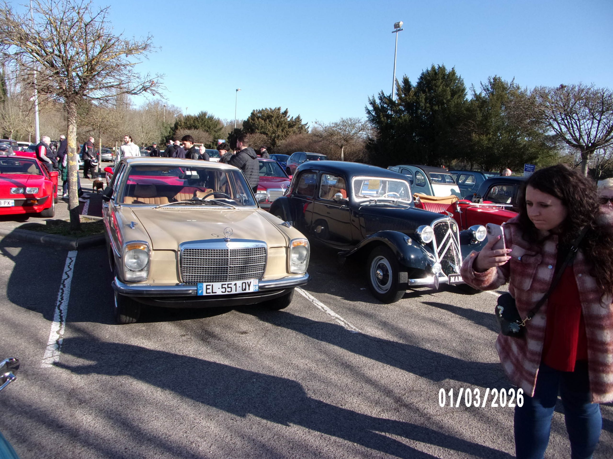 Les Dieux du ciel ont aimé le déplacement de notre rencontre vers le parking du Leclerc l’Orangerie, en ce dimanche du 1er mars le soleil nous a accompagnés toute la matinée comme au mois de février. La température un peu fraiche le matin n’empêche pas les anciennes de sortir, au contraire tant qu’il fait sec. On voit bien que les propriétaires souhaitent tourner la page de l’hiver.